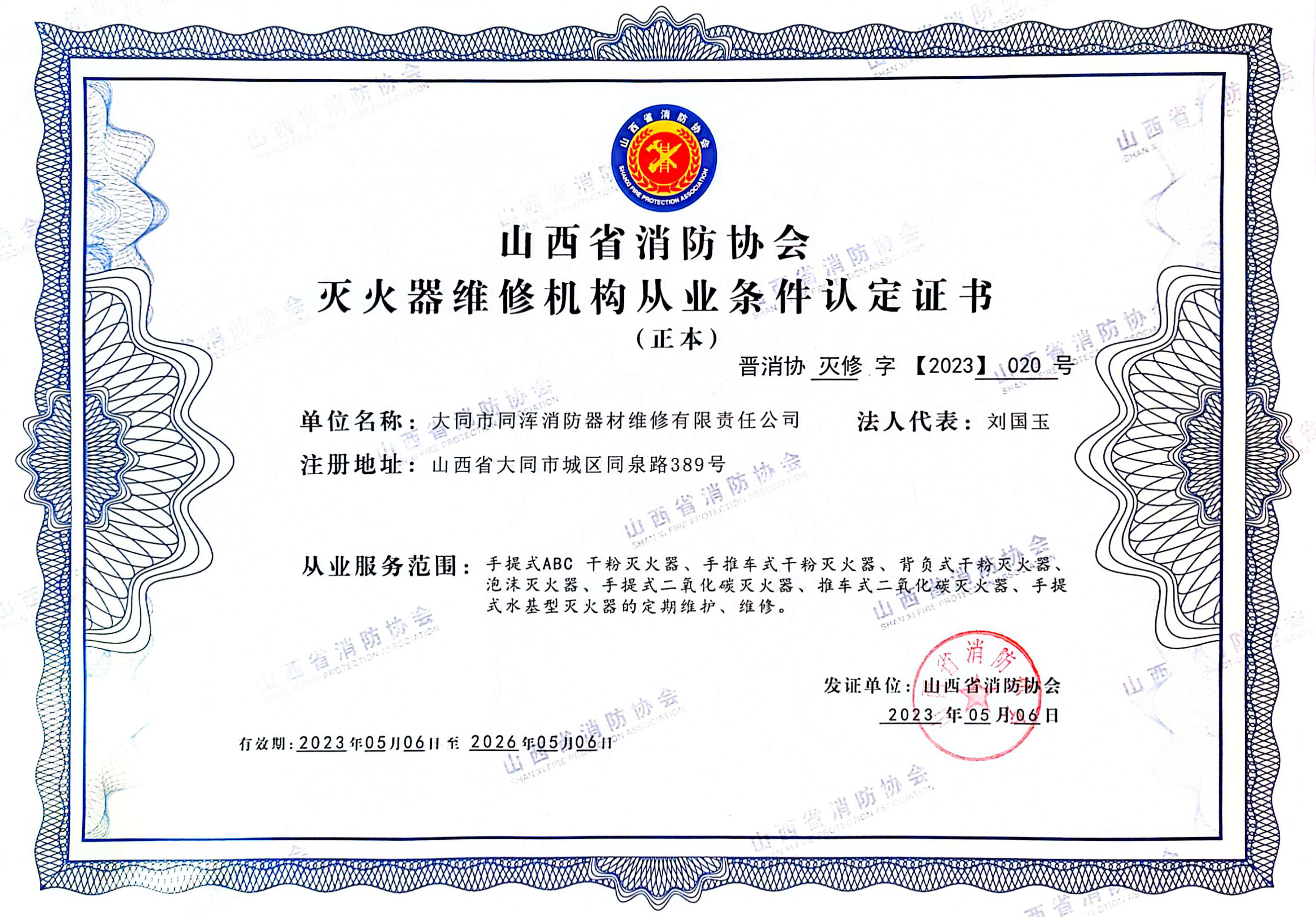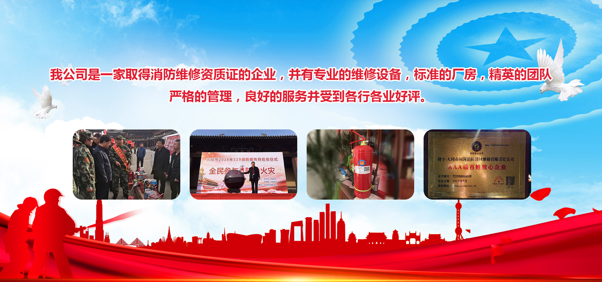 大同市同渾消防器材維修有限責任公司,位于大同市同泉路389號,始建于2000年,是公安部消防局定點銷售和維修的企業(yè),歷經(jīng)多年的創(chuàng)建、發(fā)展和拼搏,現(xiàn)有多家消防器材廠商供應我公司,并有現(xiàn)代化維修設備,標準的廠房,嚴格的管理,優(yōu)良的設備,良好的服務并受到各行各業(yè)的好評??偨?jīng)理劉國玉嚴格管理,嚴格要求,精益求精,認真負責,帶領團隊熱烈歡迎各界朋友顧客光臨。
